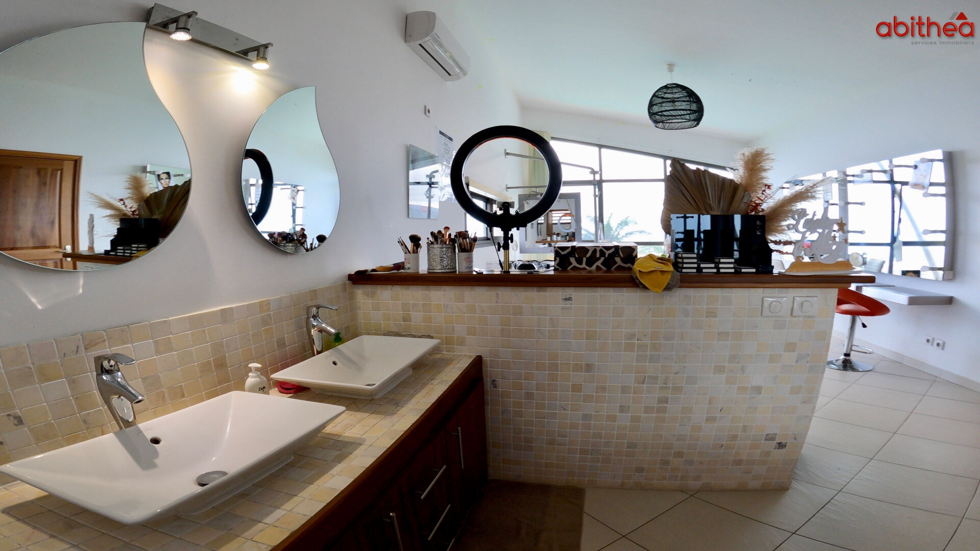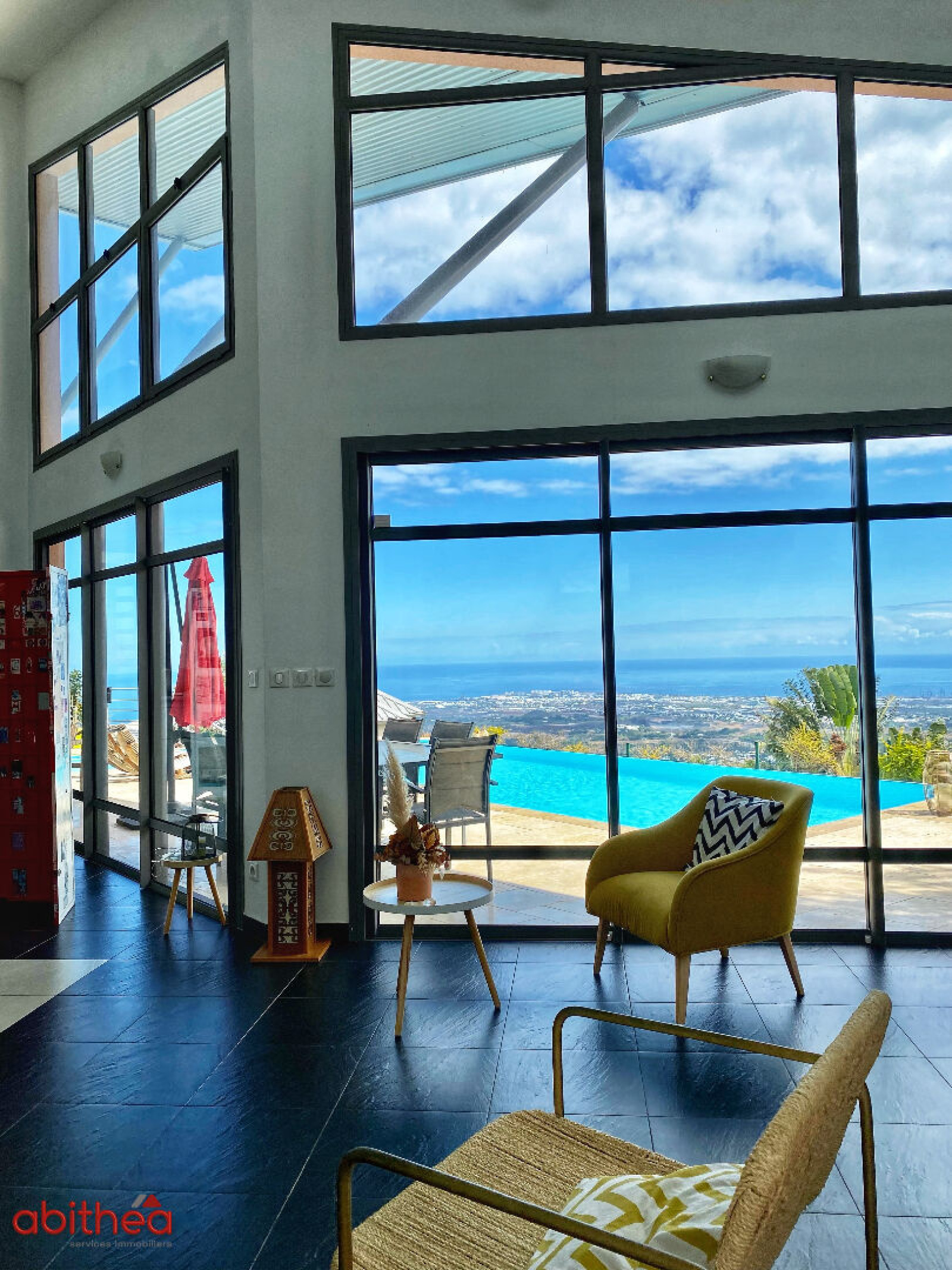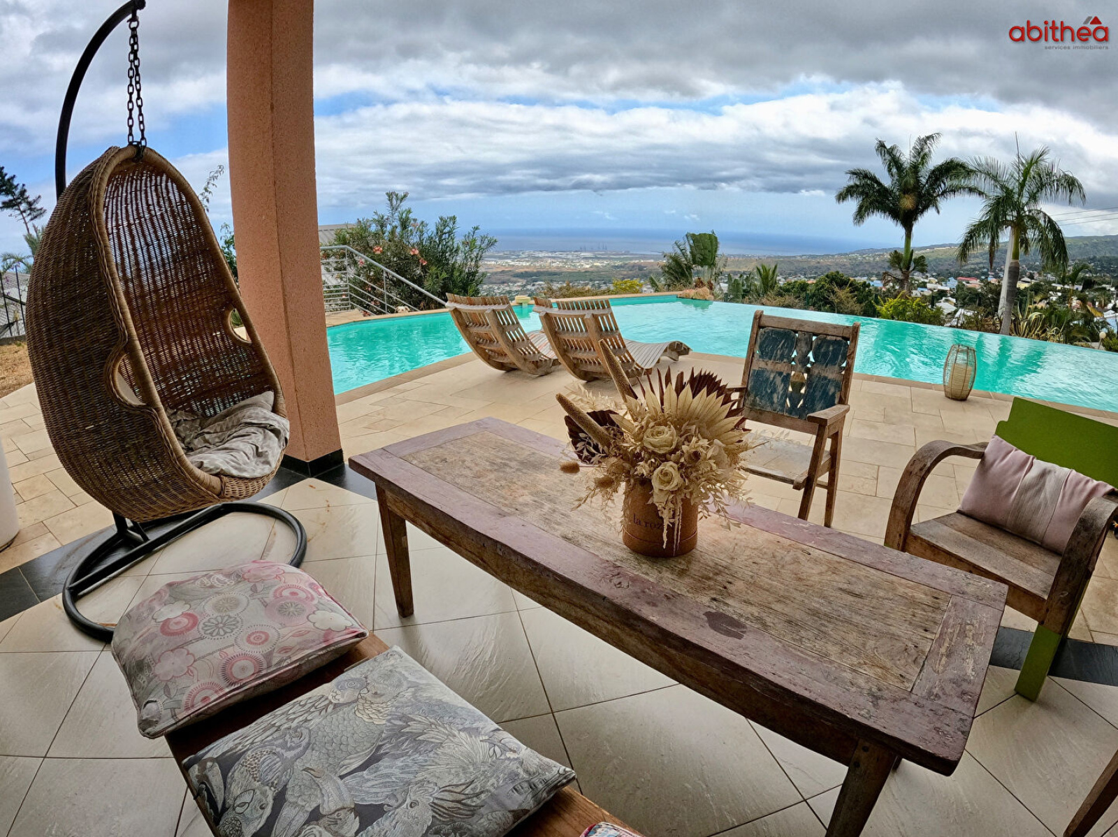 Venez découvrir cette superbe villa sur Bois de Nèfles Saint-Paul (limite La Plaine), offrant une vue dégagée sur l'océan et les montagnes et se trouvant dans un endroit calme. Cette maison type T5/6 d'environ 300 m2 a été construite en 2010 sur un terrain de 1600 m2. Elle est divisée en 2 blocs : un bloc jour et un bloc nuit. La partie jour se compose d'une grande pièce de vie avec cuisine ouverte de plus de 80 m2 donnant sur une terrasse, elle-même donnant sur la piscine à débordement et offrant une vue dégagée sur l'océan. A l'étage vous bénéficierez d'une mezzanine pouvant servir de bureau ainsi que d'une suite parentale composée d'une chambre (avec dressing) et d'une salle d'eau. Les pièces sont équipées de grandes bais vitrés qui permettent de profiter pleinement de la vue. La partie nuit, qui est de plain-pied, se compose de 3 chambres avec chacune une mezzanine exploitable (au dessus d'1m80 d'hauteur sous plafond), d'un WC indépendant, d'une salle de bain et d'une salle d'eau (commune à deux chambres). Le bloc nuit peut-être idéal pour des enfants ou des adolescents. La maison bénéficie également d'un grand garage de plus de 36 m2 et de 2 buanderies. A l'éxtérieur vous pourrez profiter d'une grande terrasse de plus de 35m2, d'une piscine au sel, équipée d'une pompe à chaleur et à débordement et d'un grand jardin plat et arboré, le tout avec une superbe vue dégagé sur l'océan et les montagnes. Le terrain est entièrement clôturé et la maison est équipée d'un portail automatique. Cette villa peut aussi être transformée facilement en chambres d'hôtes de par son agencement : la partie nuit étant complètement indépendante de la partie jour où les propriétaires pourraient vivre tout en gérant les chambres d'hôtes qui se trouveraient dans la partie nuit. Par ailleurs, la buanderie peut également être transformée en chambre d'hôtes avec son entrée indépendante. Pour plus d'informations contactez Anna Dudoret au 0692 23 80 25, agent commercial immatriculé au RSAC de Saint-Pierre sous le numéro 2022AC00004.