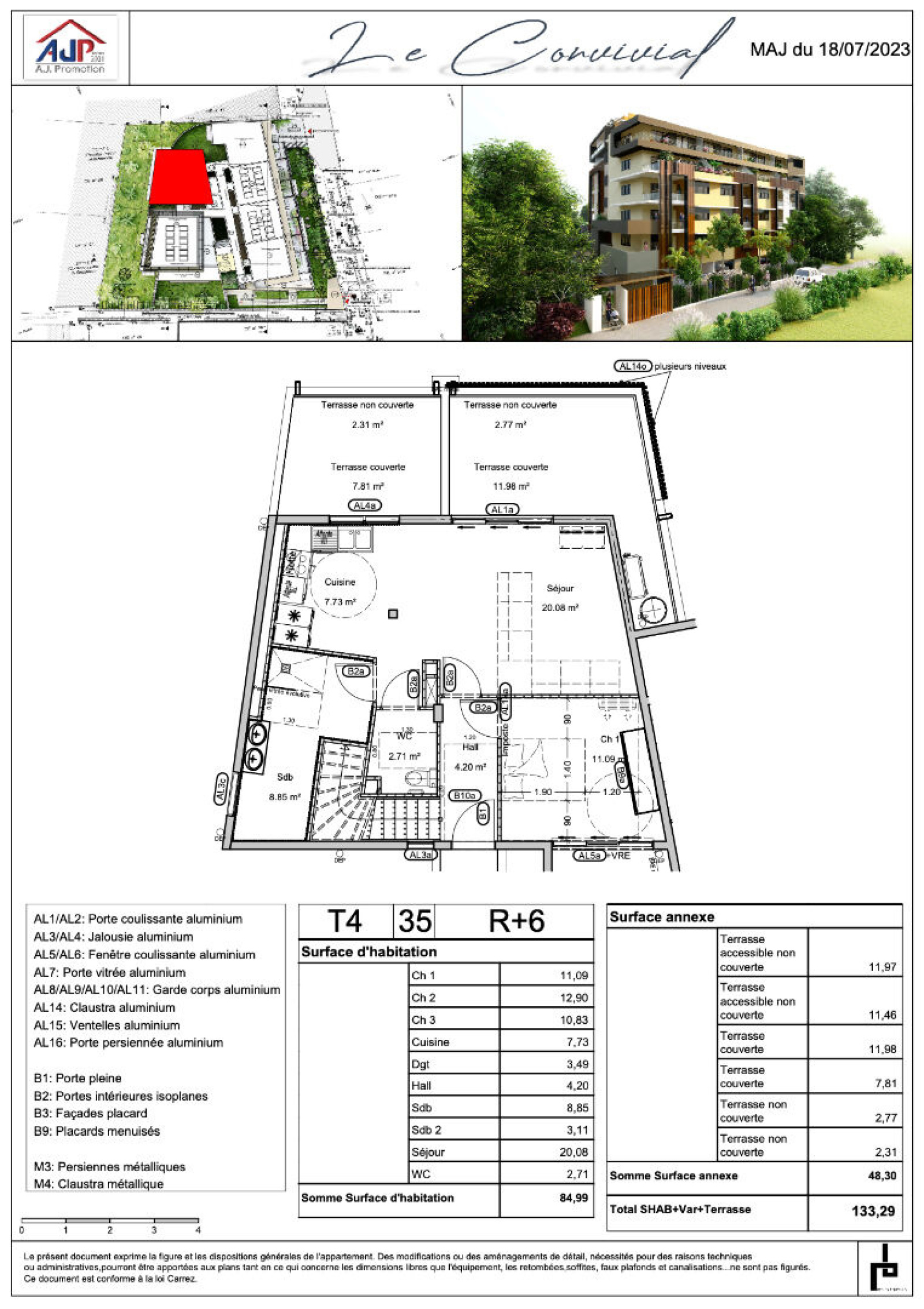Idéalement située dans la commune de SAINT-DENIS la résidence LE CONVIVIAL vous fait découvrir ses divers appartements. Résidence composée de 37 appartements sur 6 étages + parkings et de 12 caves. La résidence sera également équipée d'un ascenseur passant par tout les étages. 3 appartements de type T4 sont disponibles: Lot 28 de 69,41m2 situé à R+5 composé d'une cuisine ouverte sur le séjour de 28,2m2, d'une salle de bain de 4,18m2, d'un WC séparé de 1,35m2, d'une première chambre de 8,98m2, une deuxième de 9,09m2, une troisième de 11,15m2 et une terrasse couverte de 14,75m2. Au prix de 398 100 euros. Lot 35 en duplex de 85,67m2 situé à R+6 composé au RDC d'une cuisine ouverte séjour de 27,81m2, d'une salle de bain de 8,85m2, d'un WC séparé de 2,71m2, d'une chambre de 11,09m2, une terrasse couverte de 19,79 et une terrasse non couverte de 5,08m2. À l'étage une salle de bain + WC de 3,11m2, une première chambre de 12,90m2, une seconde de 10,83m2 et une terrasse accessible non couverte de 23,43m2. Au prix de 569 400 euros. Lot 36 en duplex de 94,33m2 situé à R+6 composé au RDC d'une cuisine de 8,26m2, un séjour de 32,14m2, une salle de bain de 3,62m2, un WC séparé de 2,32m2, une chambre de 12,55m2 et une varangue 11,30m2. À l'étage un WC de 1,45m2, une chambre de 11,35m2, une seconde de 12,12m2 et une terrasse accessible non couverte de 17,52m2. Au prix de 563 800 euros. Pour plus d'informations contactez Banks Sandrine au 0692 27 29 69.